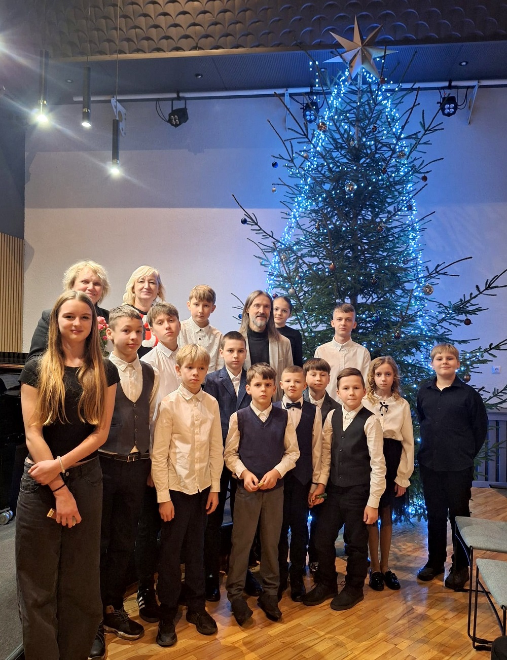 Tradicionālo kopbildi pie varenās egles skolas aktu zālē pēc veiksmīgi aizvadīta Ziemassvētku koncerta vecākiem pirmie šogad veidoja Ikara Ruņģa audzēkņi. Sitaminstrumentu nodaļa kopā ar savu pedagogu un koncertmeistari Inetu Rozentāli