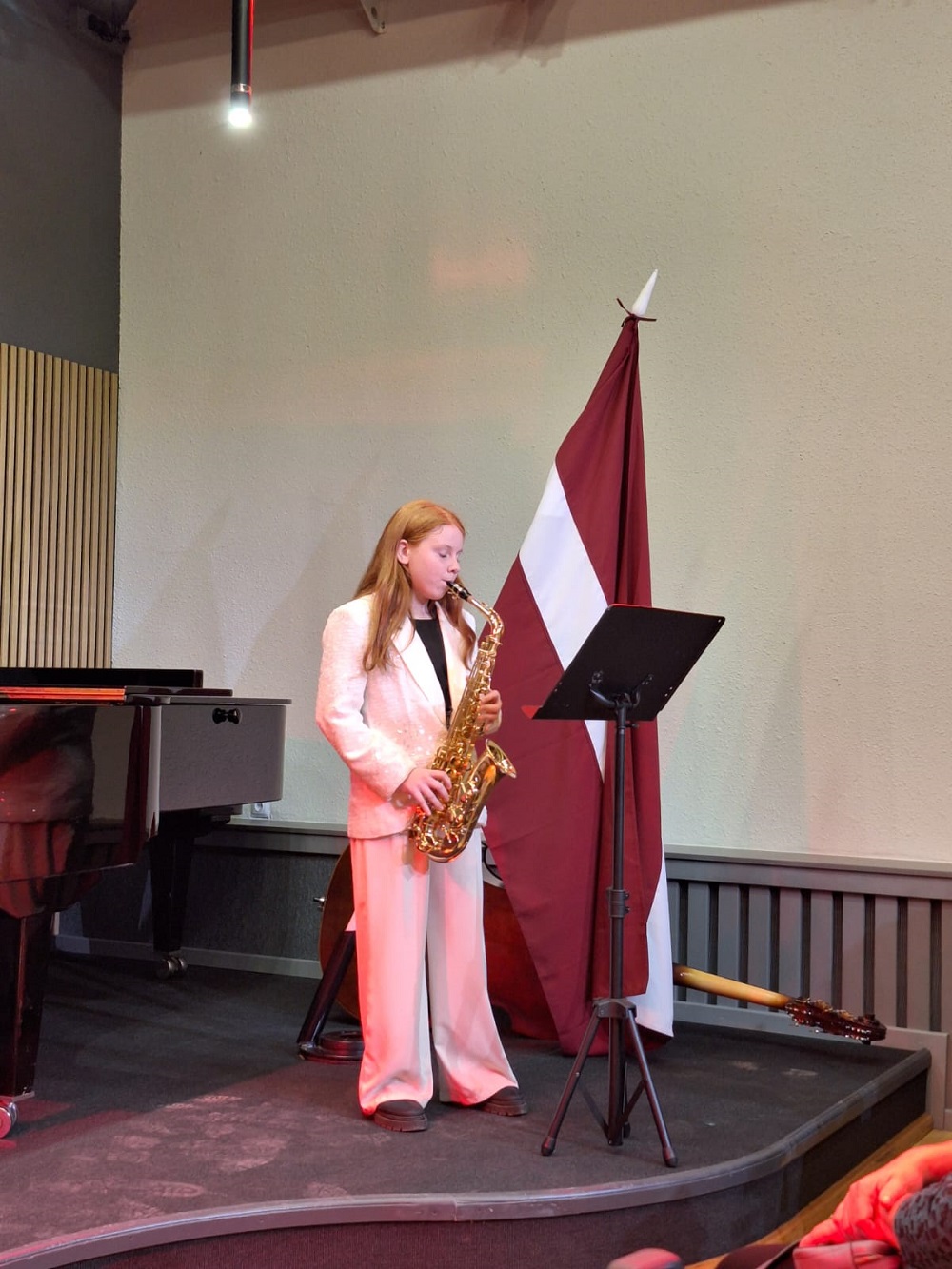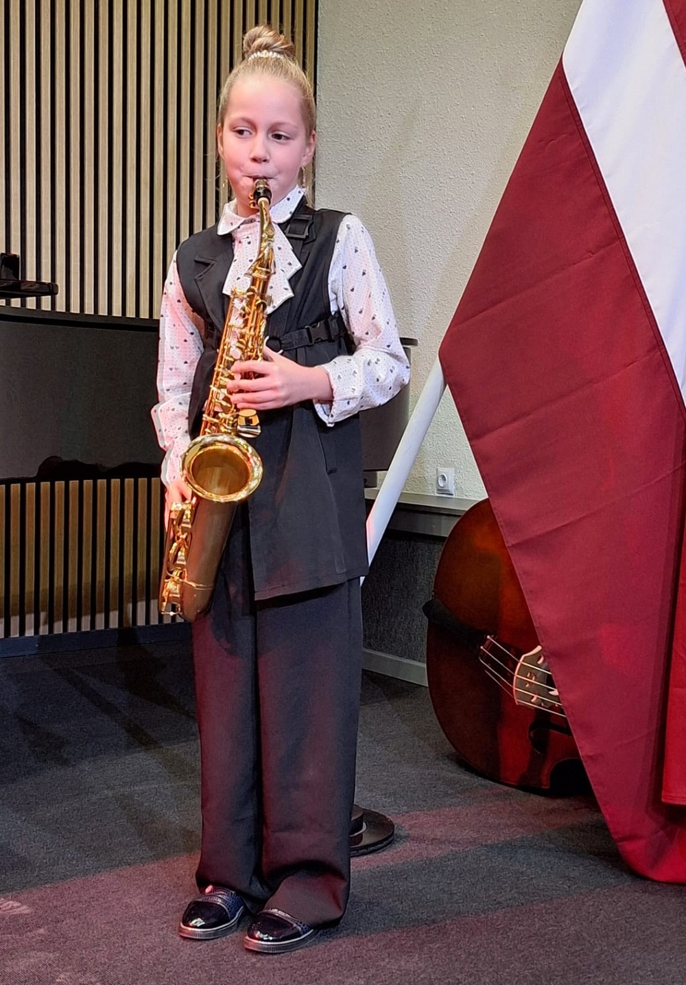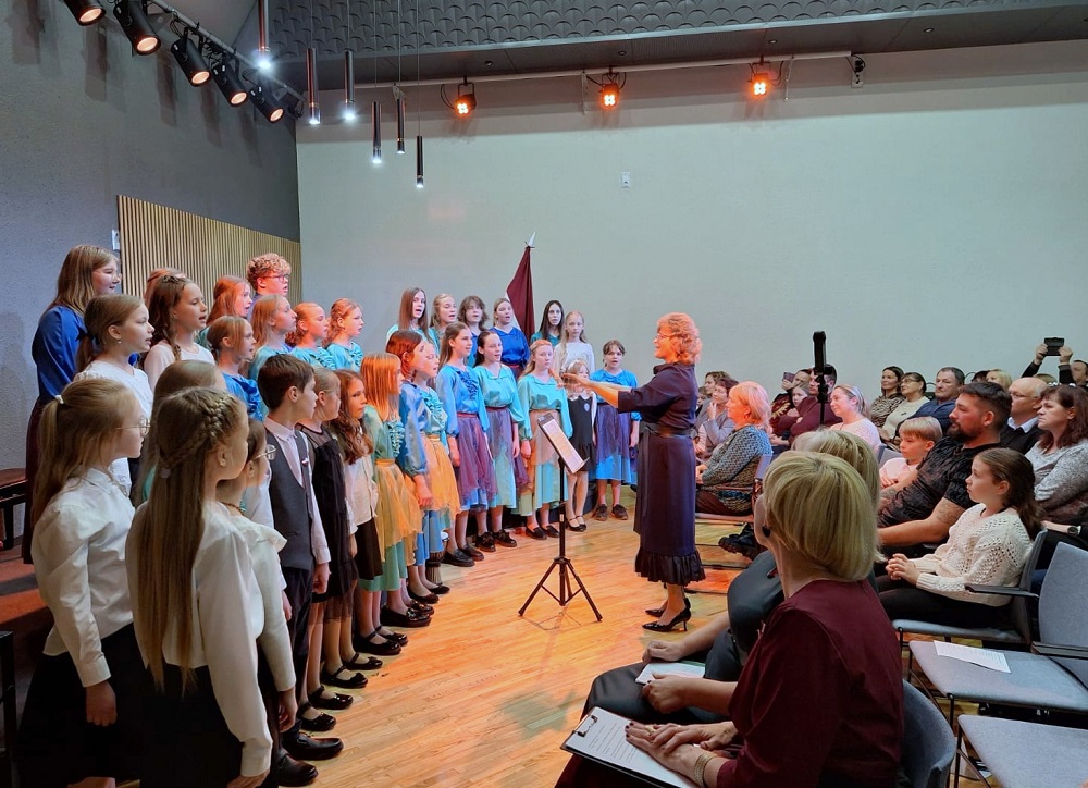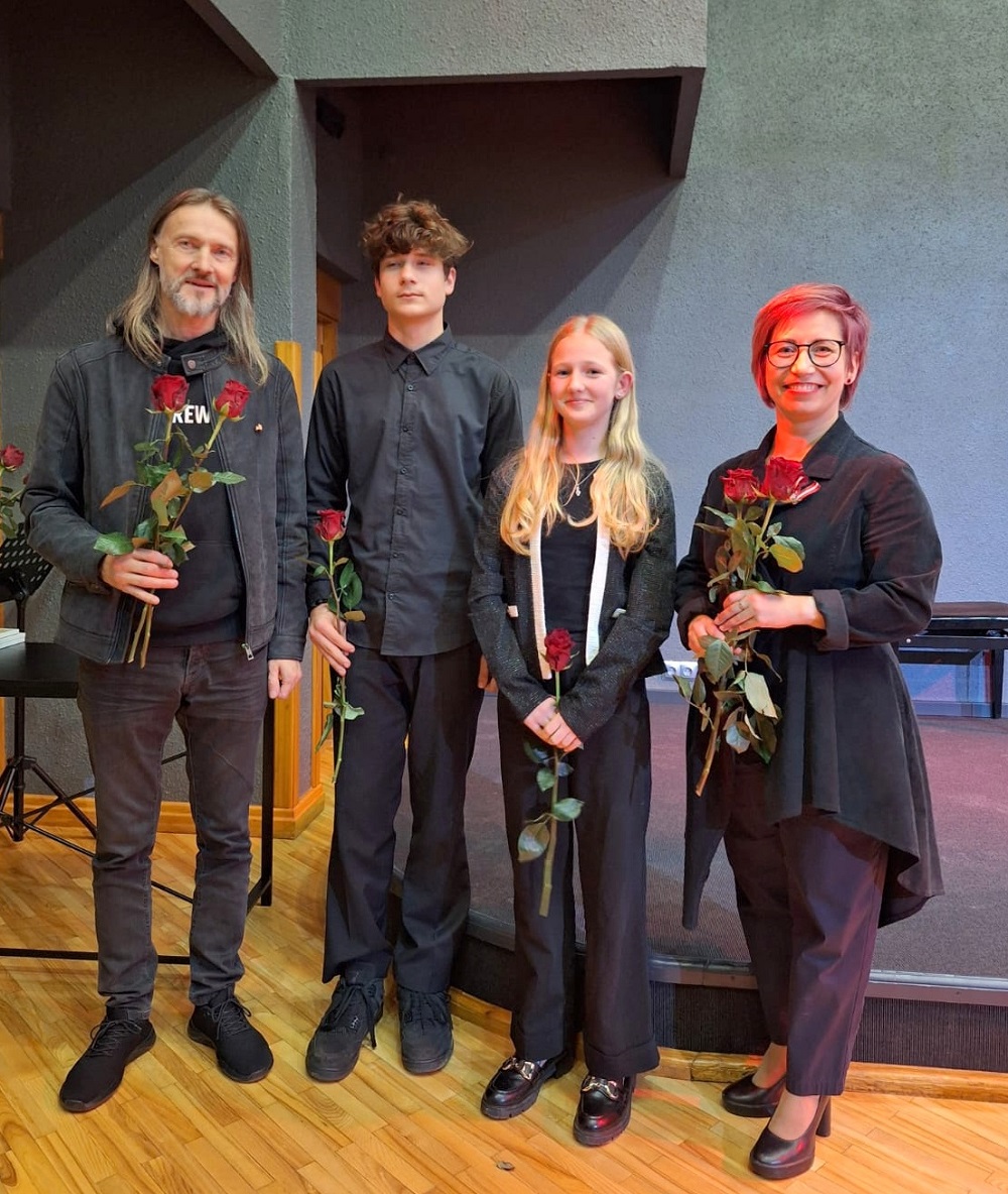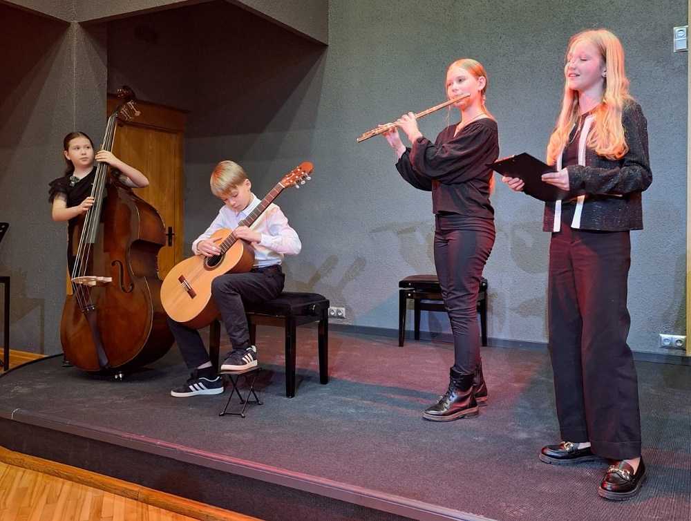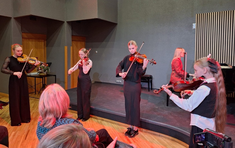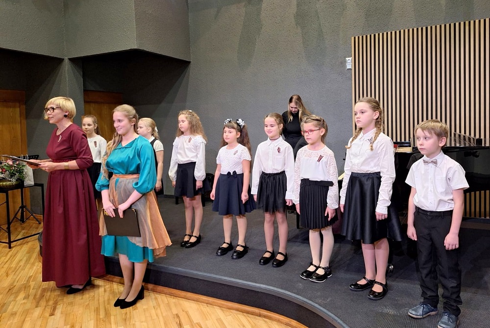 Klātesošo vecāku un citu klausītāju priekam muzicēja 1.-2.klašu ansamblis (ped.I.Bukša), L.Kārkliņas audzēknis Renārs Krilovs, Kristapa Lubova audzēknes Lauma Maslova un Dārta Garā (kcm. Ineta Rozentāle), klavieru ansamblis – Elīza Lediņa un Elizabete Upelniece (ped.L.Jaunliniņa). Publiku ļoti aizkustināja arī jaunizveidotais pedagoga L.Krasņikova ansamblis – Olafs Jakubonis (ģitāra), Elza Maldute (flauta), Rasa Mustermane (bass) un Māra Rimicāne (vokāls). Koncertā piedalījās arī pedagoģes A.Avotiņas audzēkņi – vijolnieku ansamblis un Viktorija Tjuha (kcm.D.Jukša). Pūšaminstrumentu sekstets muzicēja kopā ar pedagogu A.Dziļumu. Koncerta noslēgumā uzstājās skolas koris. Dzirdējām pirmatskaņojumu – komponistes Laumas Kazakas īpaši mūsu korim rakstītu skaņdarbu – “Kastanis rudenī”, bet koncerts noslēdzās ar patriotisko J.Aišpura dziesmu no iepriekšējo Dziesmu svētku repertuāra “Tavs karogs”.