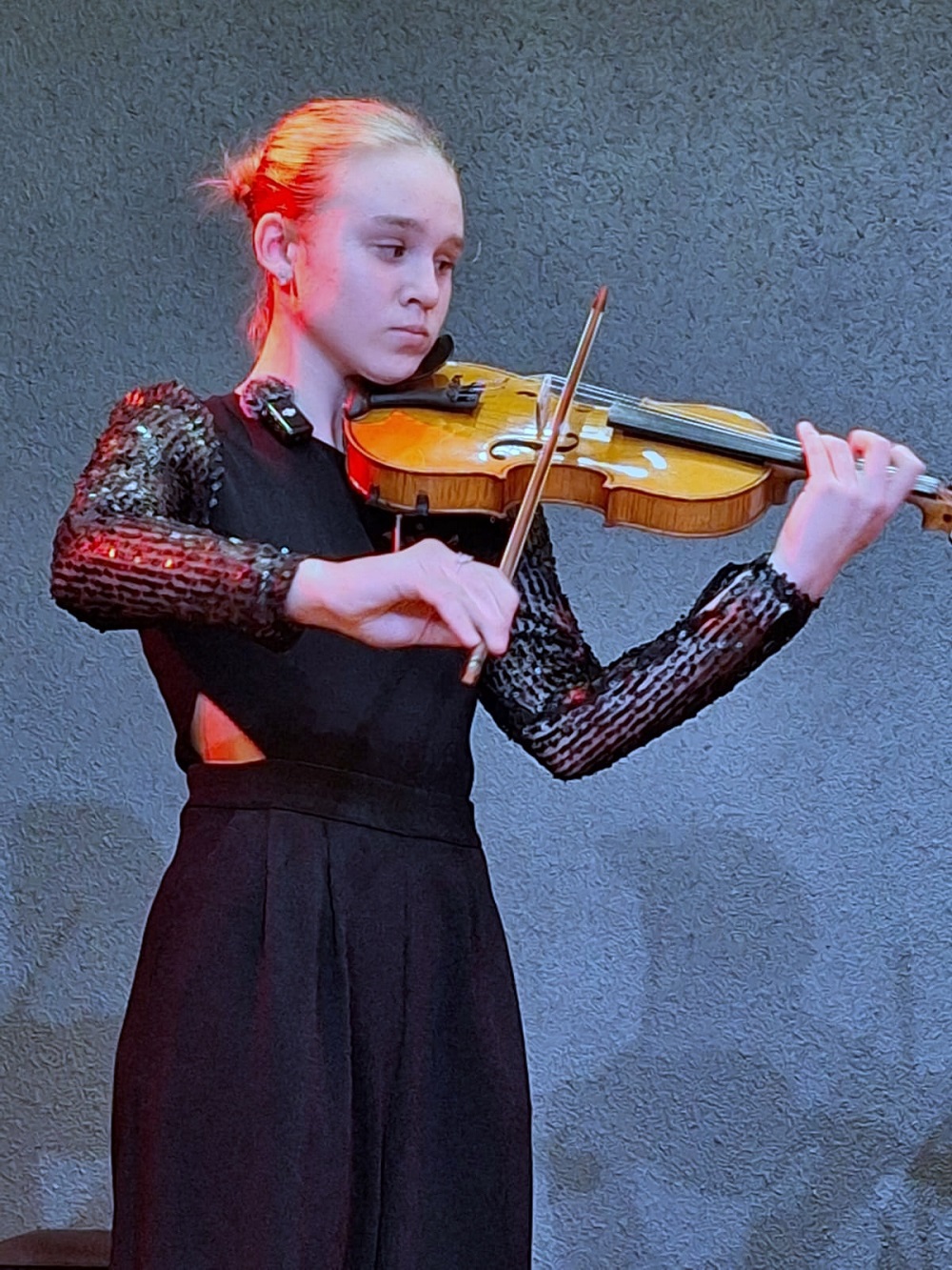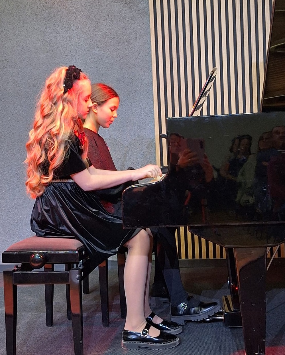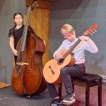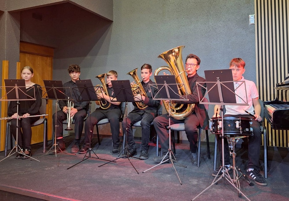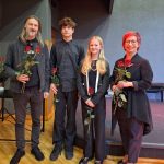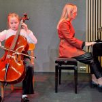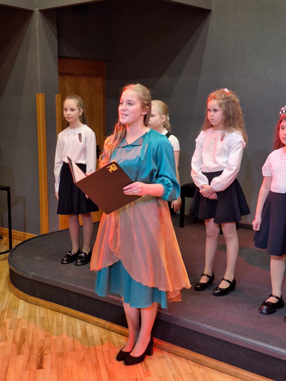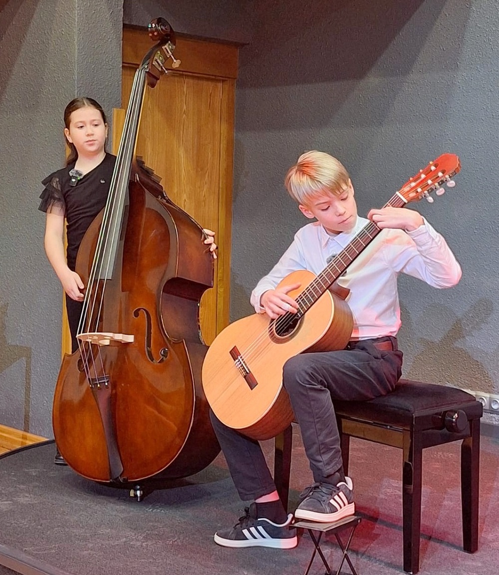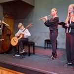 Klātesošo vecāku un citu klausītāju priekam muzicēja 1.-2.klašu ansamblis (ped.I.Bukša), L.Kārkliņas audzēknis Renārs Krilovs, Kristapa Lubova audzēknes Lauma Maslova un Dārta Garā (kcm. Ineta Rozentāle), klavieru ansamblis – Elīza Lediņa un Elizabete Upelniece (ped.L.Jaunliniņa). Publiku ļoti aizkustināja arī jaunizveidotais pedagoga L.Krasņikova ansamblis – Olafs Jakubonis (ģitāra), Elza Maldute (flauta), Rasa Mustermane (bass) un Māra Rimicāne (vokāls). Koncertā piedalījās arī pedagoģes A.Avotiņas audzēkņi – vijolnieku ansamblis un Viktorija Tjuha (kcm.D.Jukša). Pūšaminstrumentu sekstets muzicēja kopā ar pedagogu A.Dziļumu. Koncerta noslēgumā uzstājās skolas koris. Dzirdējām pirmatskaņojumu – komponistes Laumas Kazakas īpaši mūsu korim rakstītu skaņdarbu – “Kastanis rudenī”, bet koncerts noslēdzās ar patriotisko J.Aišpura dziesmu no iepriekšējo Dziesmu svētku repertuāra “Tavs karogs”.