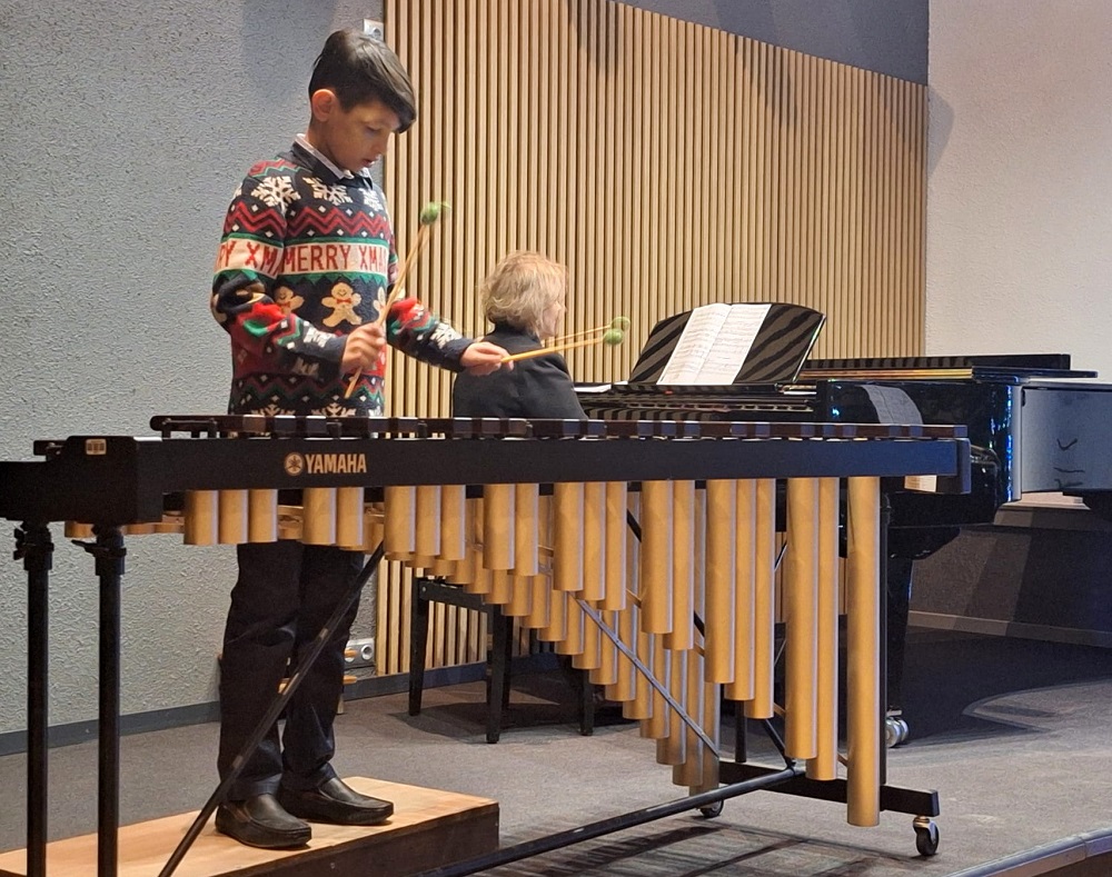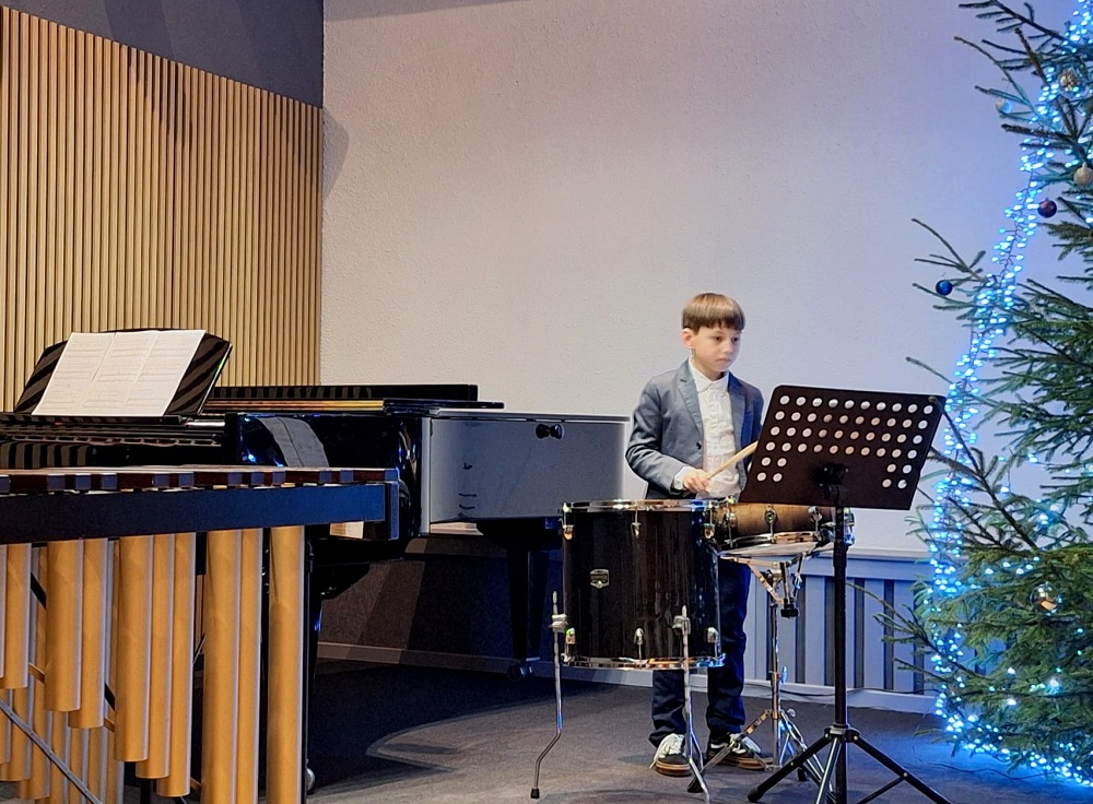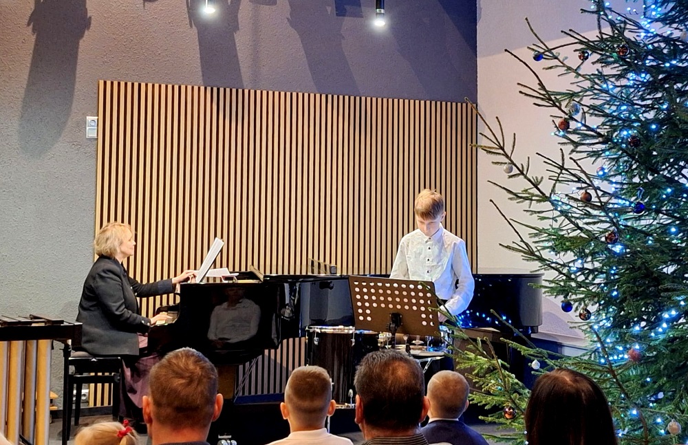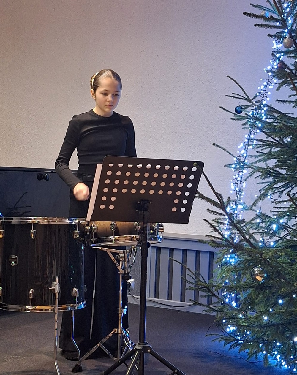 Tradicionālo kopbildi pie varenās egles skolas aktu zālē pēc veiksmīgi aizvadīta Ziemassvētku koncerta vecākiem pirmie šogad veidoja Ikara Ruņģa audzēkņi. Sitaminstrumentu nodaļa kopā ar savu pedagogu un koncertmeistari Inetu Rozentāli noslēdza šo darbīgo nedēļu. Skolotājs iejūtīgi raksturoja katru audzēkni un pieteica viņa izpildīto skaņdarbu. Sanākušajiem vecākiem ļoti patika koncerts, bet jo vairāk – pedagoga paustā vēsts, ka nokārtotas arī visas ieskaites un pusgads pabeigts godam.