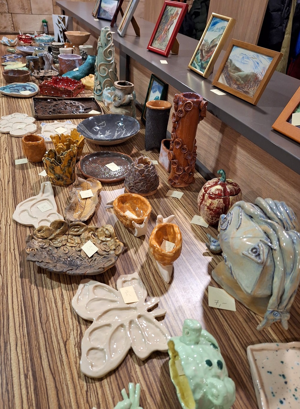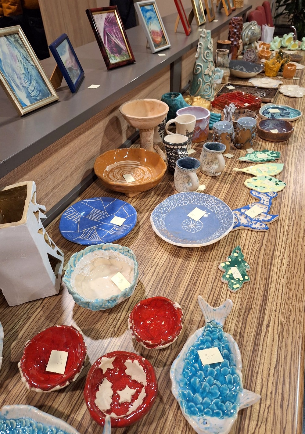 Pirms koncerta skolas foajē bija iespēja aplūkot un iegādāt Mākslas nodaļas audzēkņu darbus, kas lieliski papildināja svētku atmosfēru.
