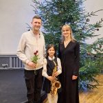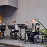 Kopā ar akordeonistiem vecākus un pedagogus priecēja Katrīnas Līnas Trekteres audzēknes Ramona Balakāne, Aleksa Bogdanoviča, Elza Sirmane, Emma Beķere, Zane Ķēniņa, Ieva Petrovska, Elizabeta Balzareviča, Karlīna Zvejniece un Evelīna Semibratova. Koncertmeistares svarīgajā lomā šovakar (un ikdienā) bija Karīna Gāršniece. Koncerttandēmu Ziemassvētku noskaņās ar vēlējumskaņdarbu “Lai priecīgi Ziemassvētki jums” noslēdza flautu ansamblis. Paldies audzēkņiem un pedagoģēm par svētku mirkli un lai mūzikā izteiktais vēlējums piepildās!