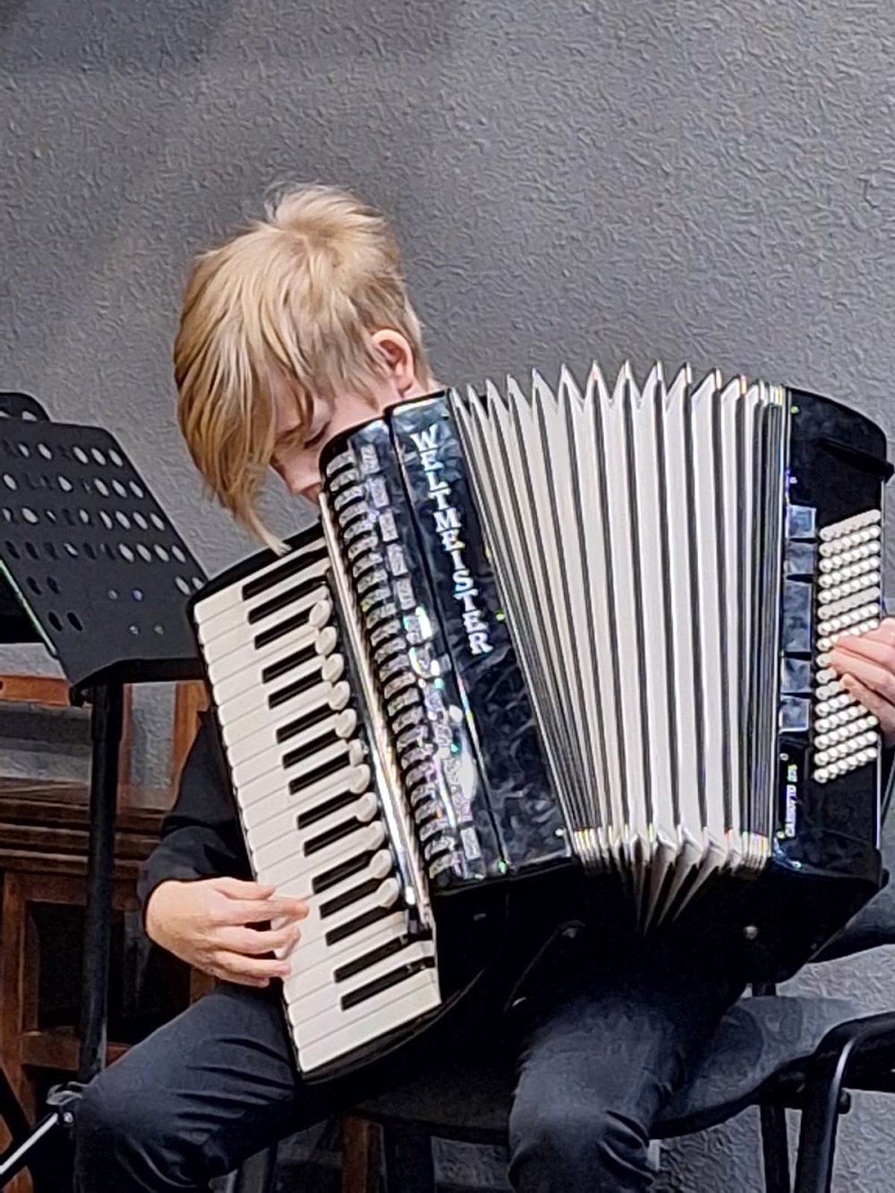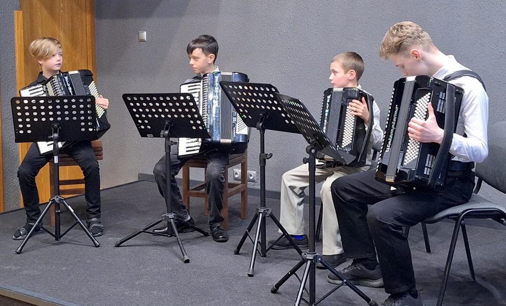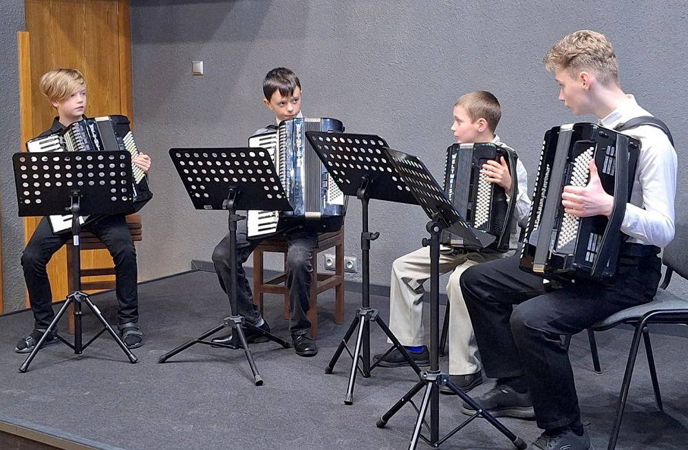 .. pulcēja akordeona un pūšaminstrumentu (flautas un saksofona) programmu apguvējus. Ziemassvētku koncertu vecākiem sniedza pedagogu Antras Rušmanes un Initas Ideres – Bankavas audzēkņi Gustavs Bergmanis, Daniils Kordjukovs, Kirils Bobovičs un Dāvis Braže. Dzirdējām gan solo skaņdarbus, gan muzicēšanu ansamblī.