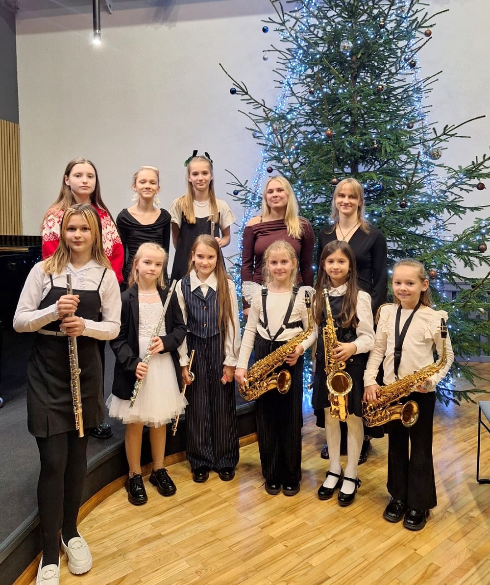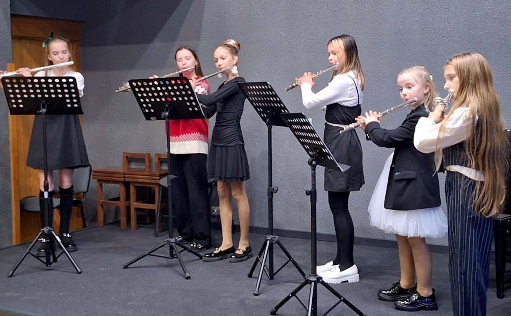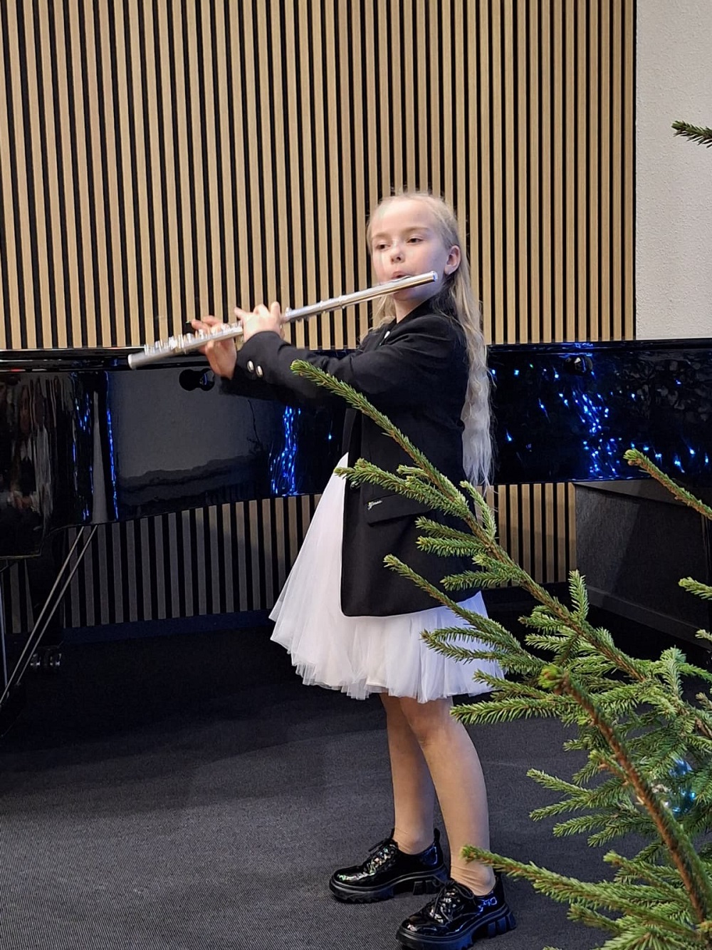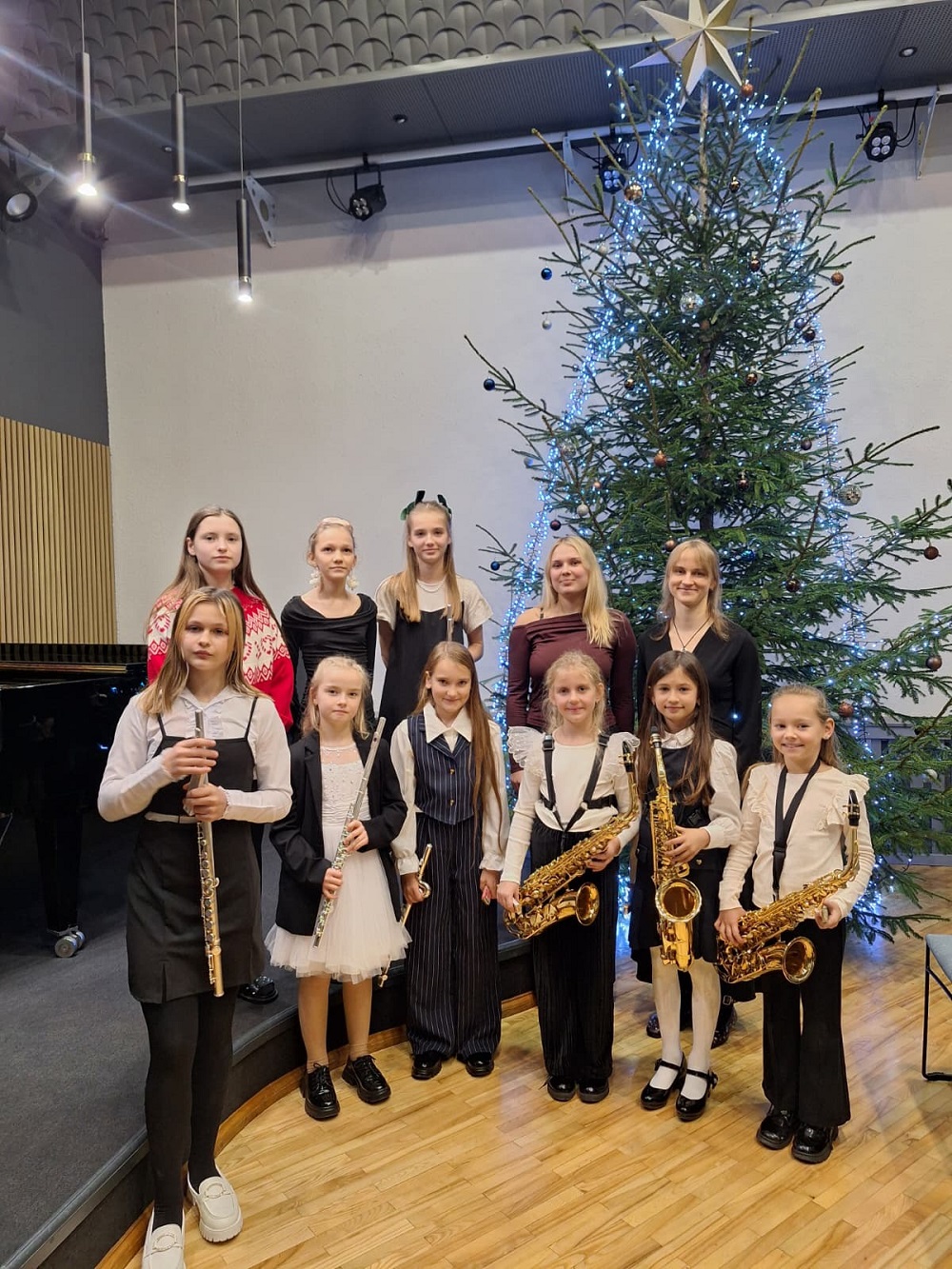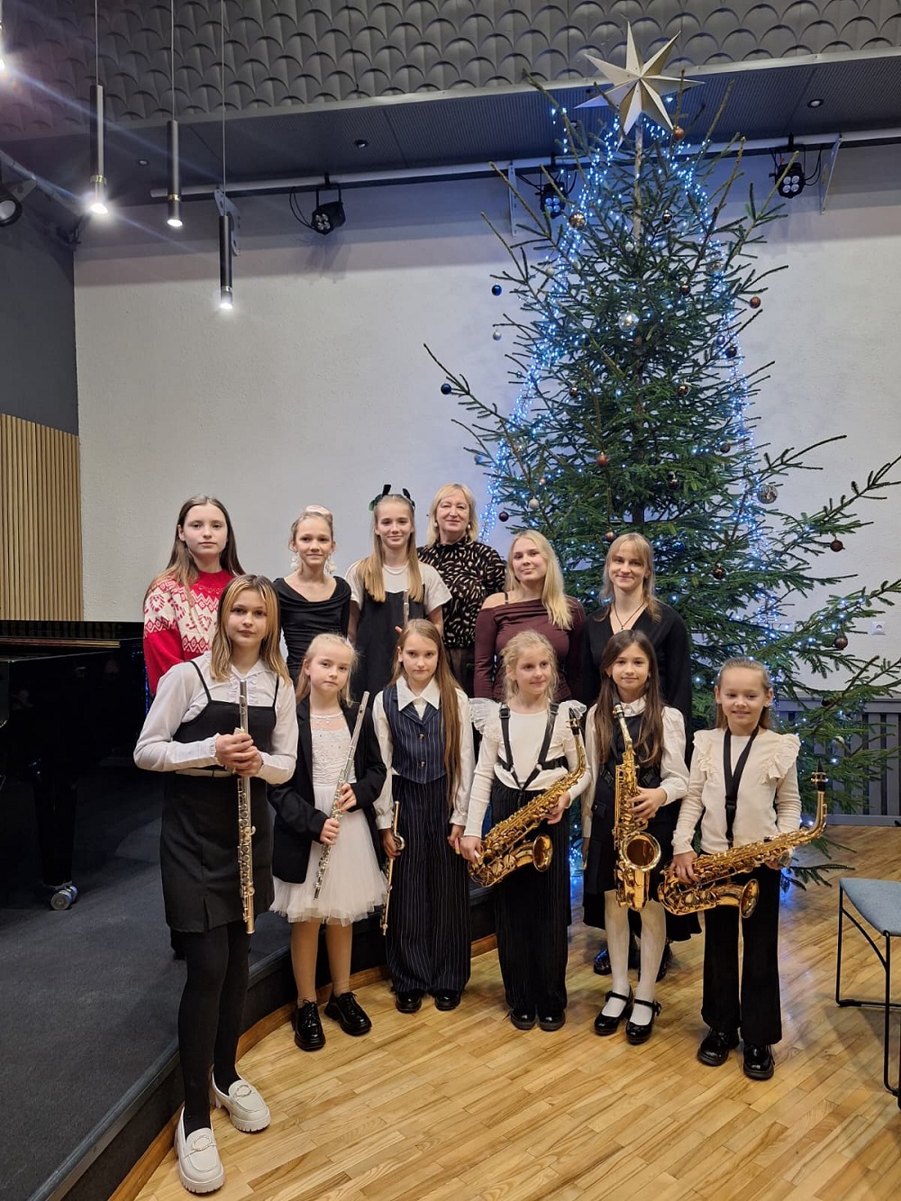 Kopā ar akordeonistiem vecākus un pedagogus priecēja Katrīnas Līnas Trekteres audzēknes Ramona Balakāne, Aleksa Bogdanoviča, Elza Sirmane, Emma Beķere, Zane Ķēniņa, Ieva Petrovska, Elizabeta Balzareviča, Karlīna Zvejniece un Evelīna Semibratova. Koncertmeistares svarīgajā lomā šovakar (un ikdienā) bija Karīna Gāršniece. Koncerttandēmu Ziemassvētku noskaņās ar vēlējumskaņdarbu “Lai priecīgi Ziemassvētki jums” noslēdza flautu ansamblis. Paldies audzēkņiem un pedagoģēm par svētku mirkli un lai mūzikā izteiktais vēlējums piepildās!