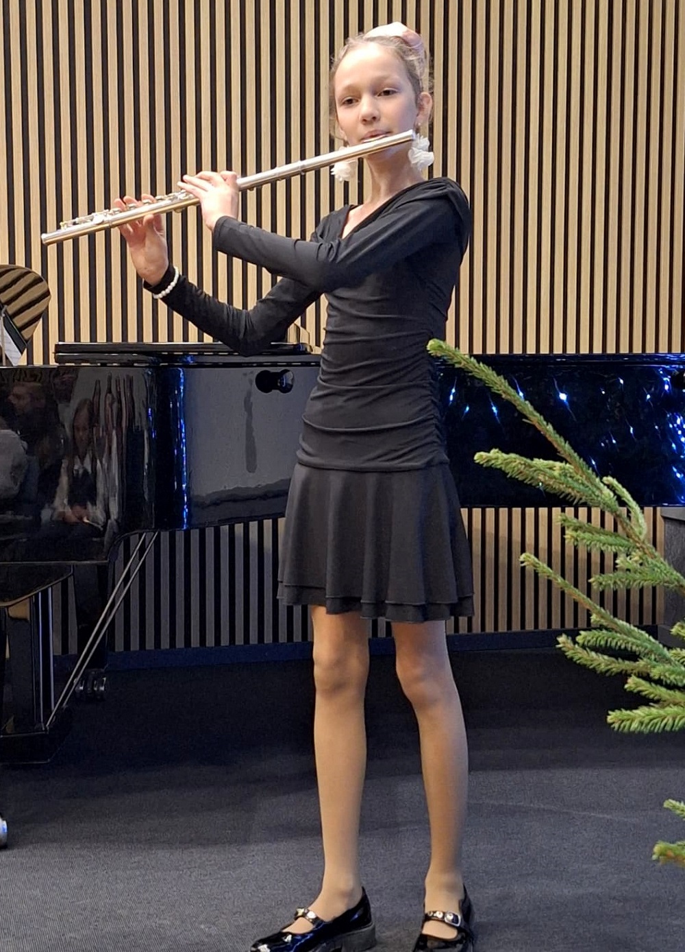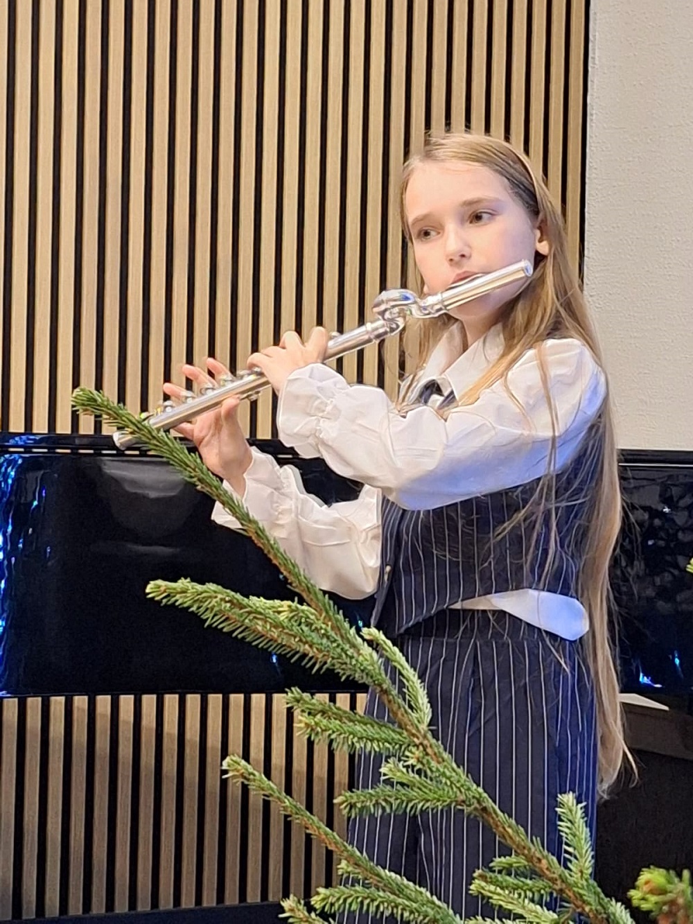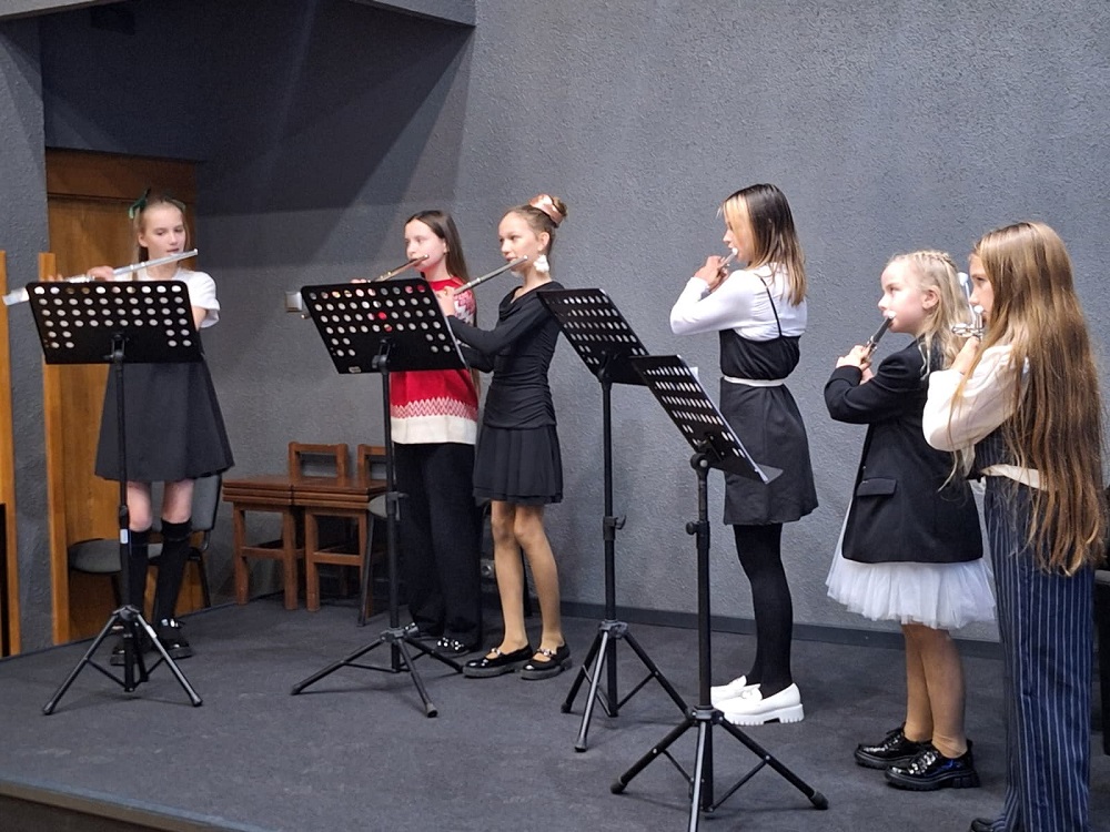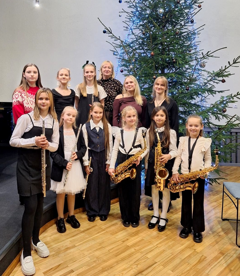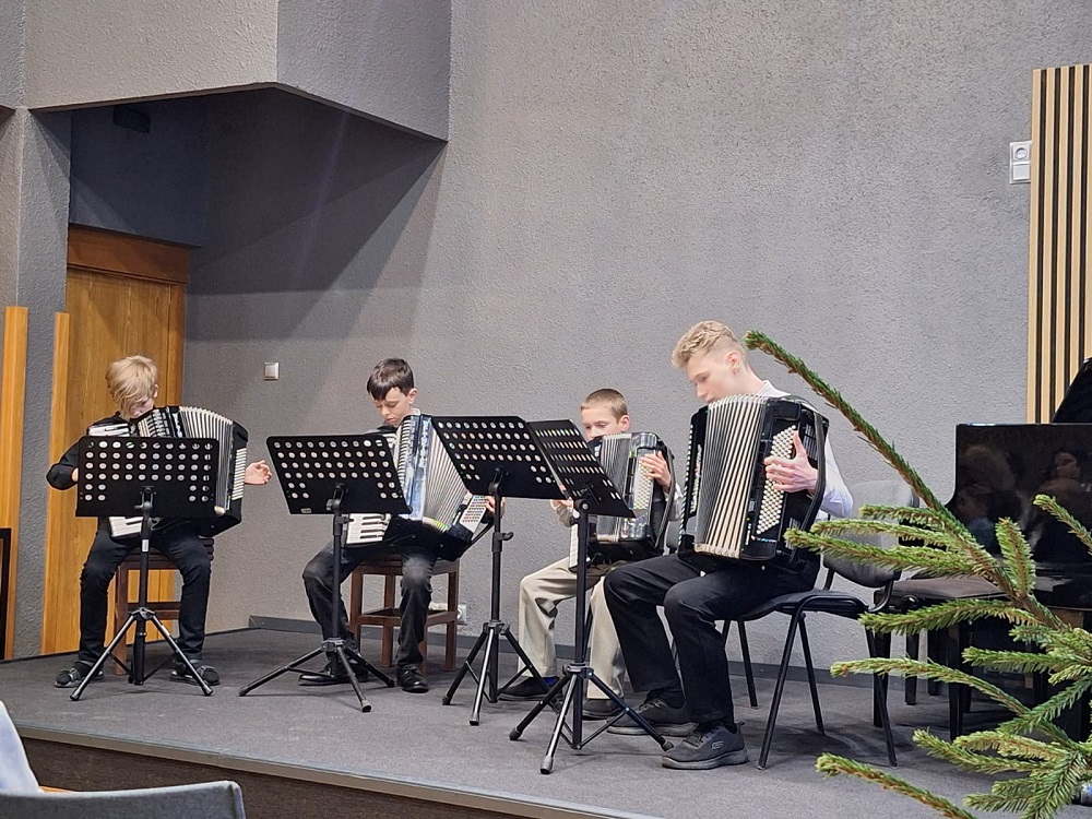 Kopā ar akordeonistiem vecākus un pedagogus priecēja Katrīnas Līnas Trekteres audzēknes Ramona Balakāne, Aleksa Bogdanoviča, Elza Sirmane, Emma Beķere, Zane Ķēniņa, Ieva Petrovska, Elizabeta Balzareviča, Karlīna Zvejniece un Evelīna Semibratova. Koncertmeistares svarīgajā lomā šovakar (un ikdienā) bija Karīna Gāršniece. Koncerttandēmu Ziemassvētku noskaņās ar vēlējumskaņdarbu “Lai priecīgi Ziemassvētki jums” noslēdza flautu ansamblis. Paldies audzēkņiem un pedagoģēm par svētku mirkli un lai mūzikā izteiktais vēlējums piepildās!