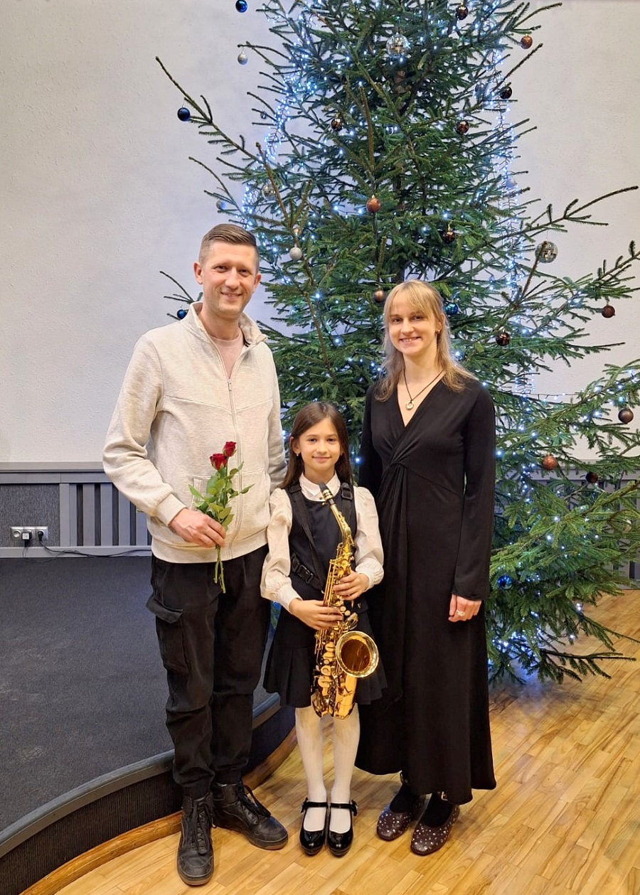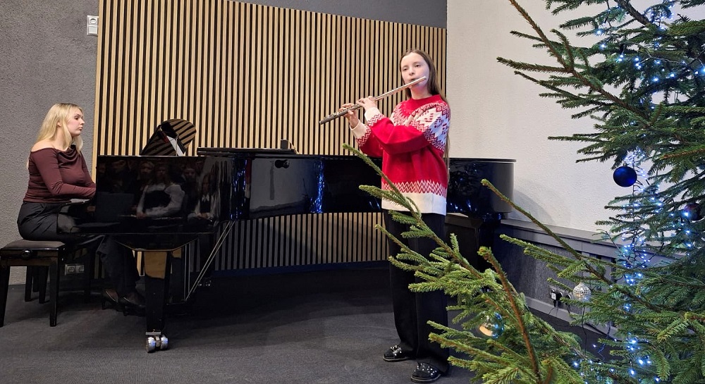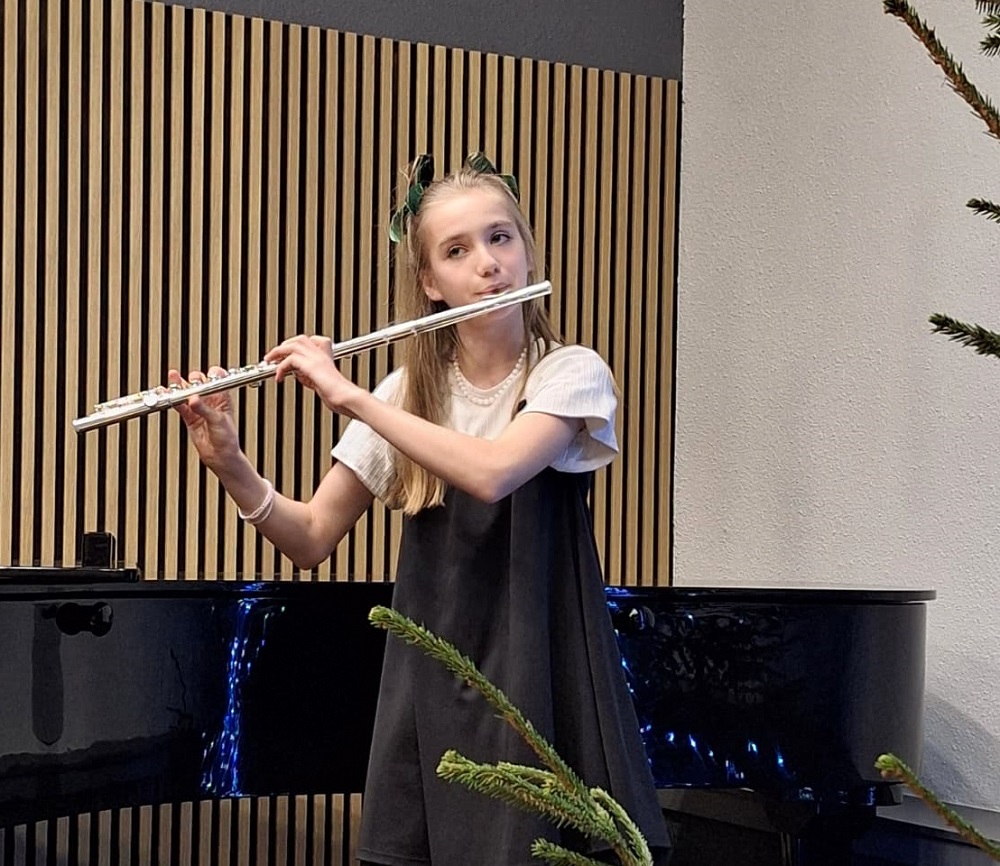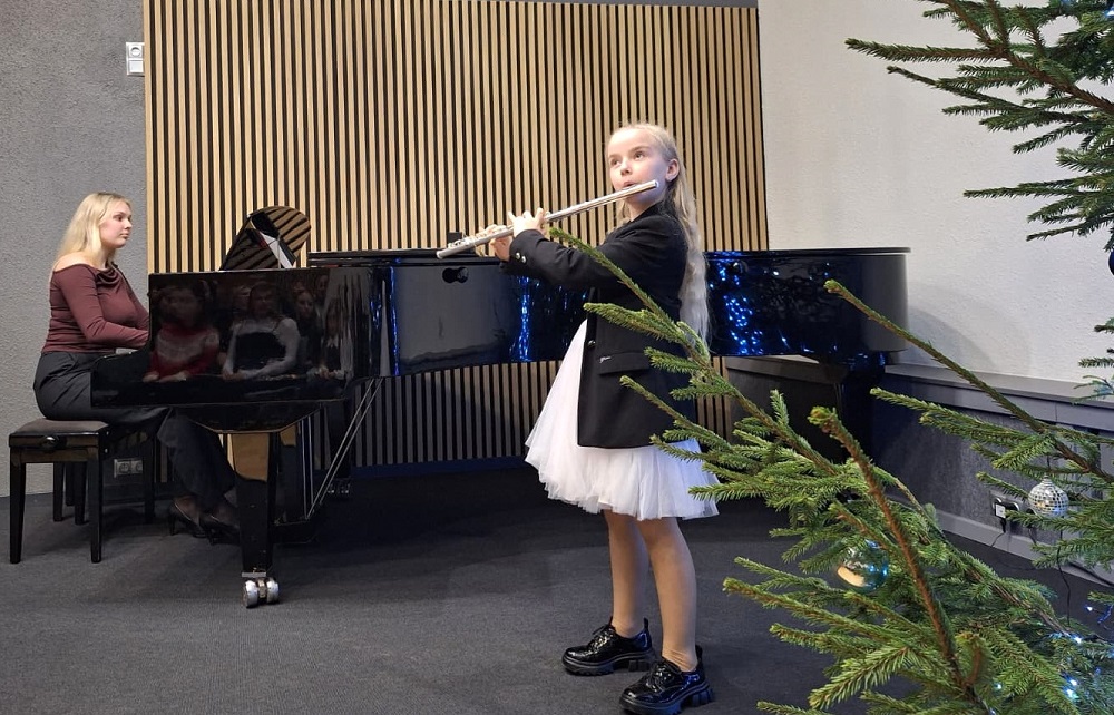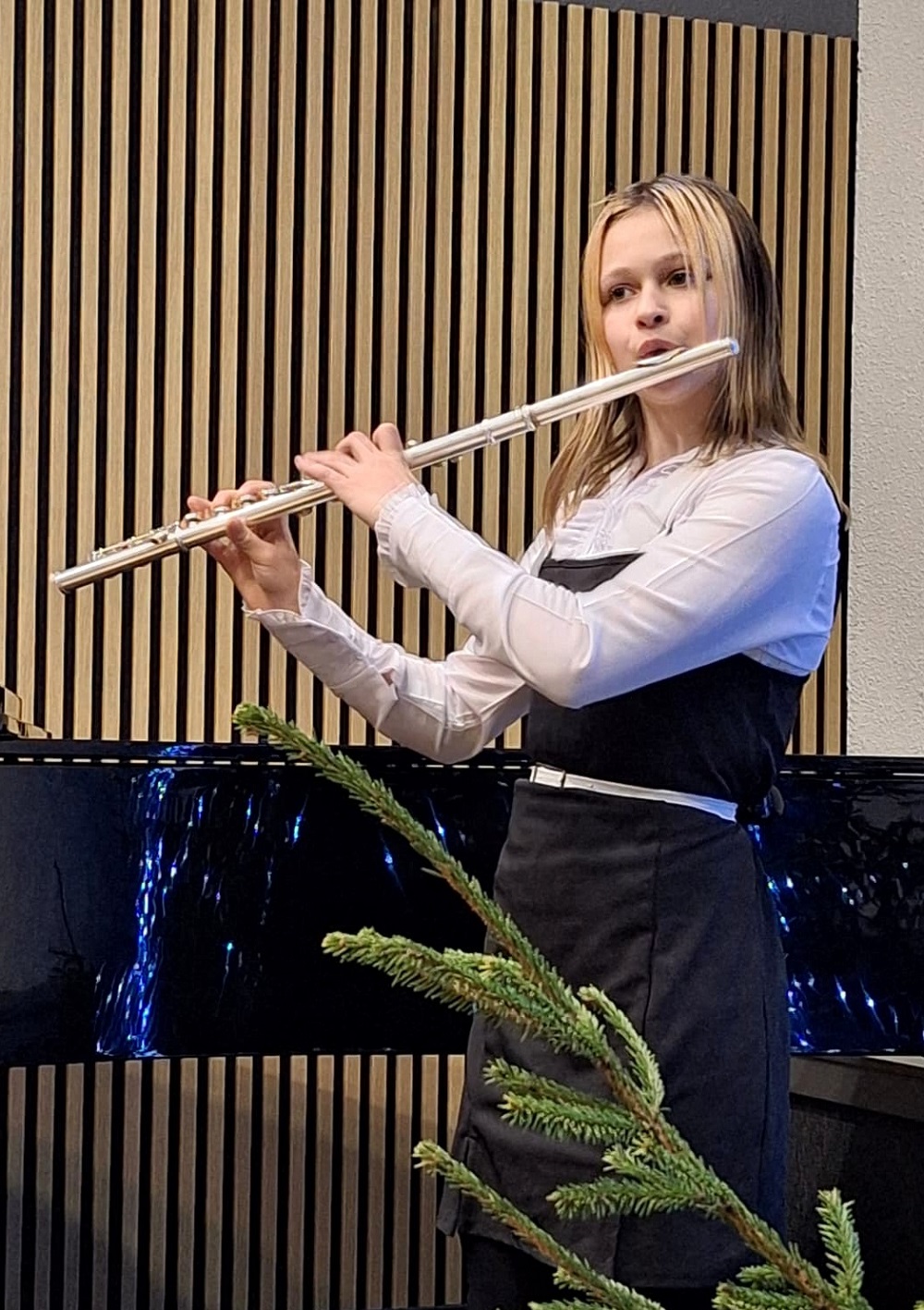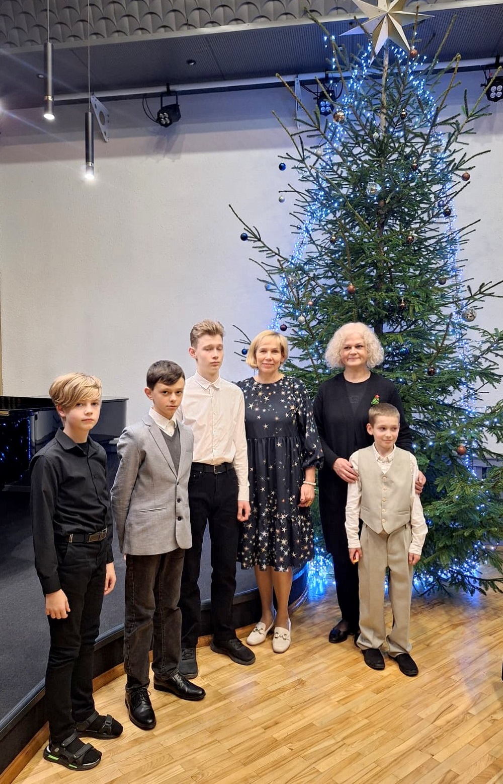 Kopā ar akordeonistiem vecākus un pedagogus priecēja Katrīnas Līnas Trekteres audzēknes Ramona Balakāne, Aleksa Bogdanoviča, Elza Sirmane, Emma Beķere, Zane Ķēniņa, Ieva Petrovska, Elizabeta Balzareviča, Karlīna Zvejniece un Evelīna Semibratova. Koncertmeistares svarīgajā lomā šovakar (un ikdienā) bija Karīna Gāršniece. Koncerttandēmu Ziemassvētku noskaņās ar vēlējumskaņdarbu “Lai priecīgi Ziemassvētki jums” noslēdza flautu ansamblis. Paldies audzēkņiem un pedagoģēm par svētku mirkli un lai mūzikā izteiktais vēlējums piepildās!