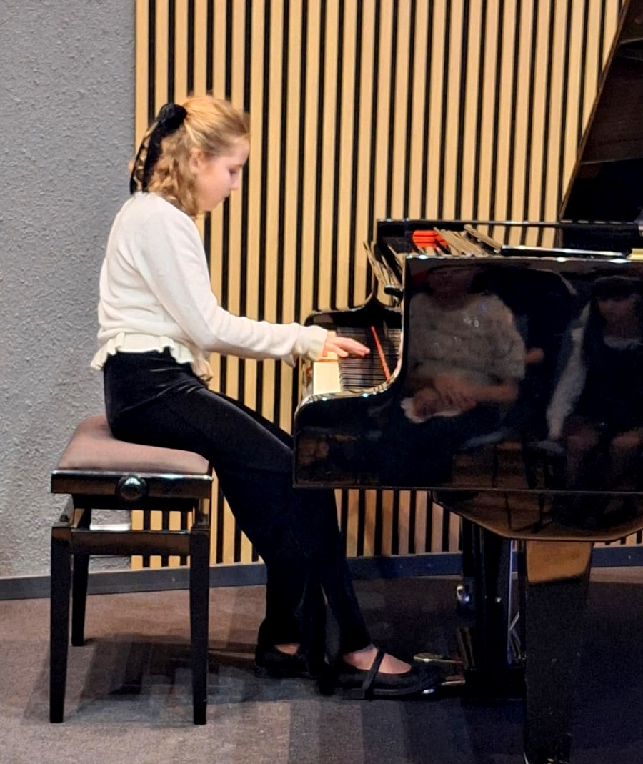 Mūziku 17.decembrī godināja klavierspēles klases audzēkņi. Nodaļas vadītājas Ligitas Kārkliņas, pedagoģu Līgas Jaunliniņas, Dzintras Vēveres, Danielas Jukšas un Inetas Rozentāles skolotie melnnbalto taustiņu pavēlnieki pieskandināja skolas zāli ikgadējā audzēkņu koncertā vecākiem. To vadīja Ligita Kārkliņa, aicinot katru klavierspēles apguvēju ar cieņu un mīlestību izturēties pret apgūstamo, pilnveidojot tehniskās prasmes, lai par tām nebūtu vairs jādomā, kad jāizsaka jūtas un emocijas, jāatrod mūzikas dvēsele. Koncertā uzstājās : Lauma Petrovska, Ruta Purviņa, Lukass Zaharčenoks, Renards Kalniņš, Renārs Krilovs, Aurēlija Ribikauska, Dārta Breijere, Džesika Bogdanoviča, Estere Arabella Čendlere, Mefodijs Kurdiševs, Amēlija Lejniece, Elīna Lisovska, Ance Vēja, Elīza Lediņa, Nikola Hutornaja, Monta Garā, Alise Emīlija Grizāne un Valters Lejnieks.